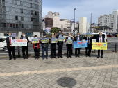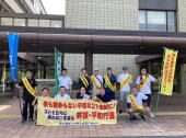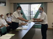 | 7月15日(金)、原水禁大分県民会議として、別府市に非核都市宣言の継続と核廃絶に向けた取り組みを要請しました。阿南副市長に要請書をお渡しした後、仲間と共に市内をアピール行進しました。 | ||