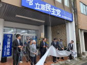 ![]() 6月30日(日)、佐伯市に立憲民主党大分県連の第2区総支部の事務所が移転。吉田忠智県連代表、地元の成迫健児県議の方々が看板の除幕を行いました。 |