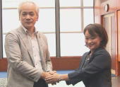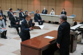 ![]() 8月24日(水)、民主教育を進める大分県民会議で県知事・県議会議長・県教育委員会へ要請を行いました。写真は渡辺教育次長へ要請書を渡しているところです。 |