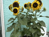 ![]() 事務所のヒマワリもたくさんの花が咲いています。 |