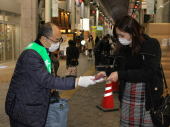 ![]() 12月8日(金)、大分市竹町で行われた「飲んだらのれん・飲酒運転根絶フェア」に参加し、啓発グッズを配りました。 |