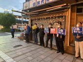 ![]() 8月17日(水)、大分市の竹町で開催された「2023連合大分 平和の夕べ」に参加しました。会場では、原爆パネルも展示され、多くの市民の方々が見てくれました。 |