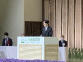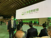 | 11月13日(日)、昭和電工武道スポーツセンターで、秋篠宮皇嗣御夫妻の御臨席のもと第45回全国育樹祭の記念行事が行われました。姫島のキツネ踊りなどのオープニングアトラクション、森林と人との関わりをテーマにしたアトラクションなど心に残る式典でした。 |